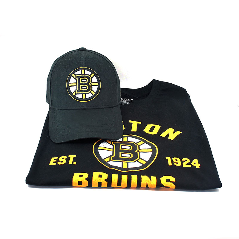 Бейсболка хоккейного клуба НХЛ Бостон Брюинз. Материал 100% хлопок. Размер L/XL российский 55-58. Вышивка эмблемы и названия клуба. Слева вышивка логотипа производителя. Свод бейсболки усилен. Козырек изогнут и прошит. Задняя застежка регулирующая размер на металлическом фиксаторе с логотипом NHL. Вентиляционные люверсы сверху бейсболки. Внутренняя сторона обода бейсболки прошита мягкой влагопоглощающей лентой. Длина козырька 7 см, глубина бейсболки 11 см. Ручная стирка. Производство Atributika & Club в КНР.