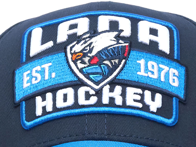 Бейсболка российского хоккейного клуба КХЛ Лада Тольятти. Материал 100% хлопок. Размер L/XL соответствует российскому размеру 55-58. Глубина бейсболки 11 см. Объёмная вышивка эмблемы, названия и года основания клуба. Слева вышивка логотипа производителя. Свод бейсболки усилен, держит форму. Изогнутый козырёк прошит. Длина козырька 7 см. Обод бейсболки с внутренней стороны прошит влагопоглощающей лентой. Задняя застёжка регулирующая размер на передвижном металлическом фиксаторе с гравировкой KHL. Вентиляционные люверсы сверху бейсболки. Деликатная стирка. Производство Atributika & Club в КНР.