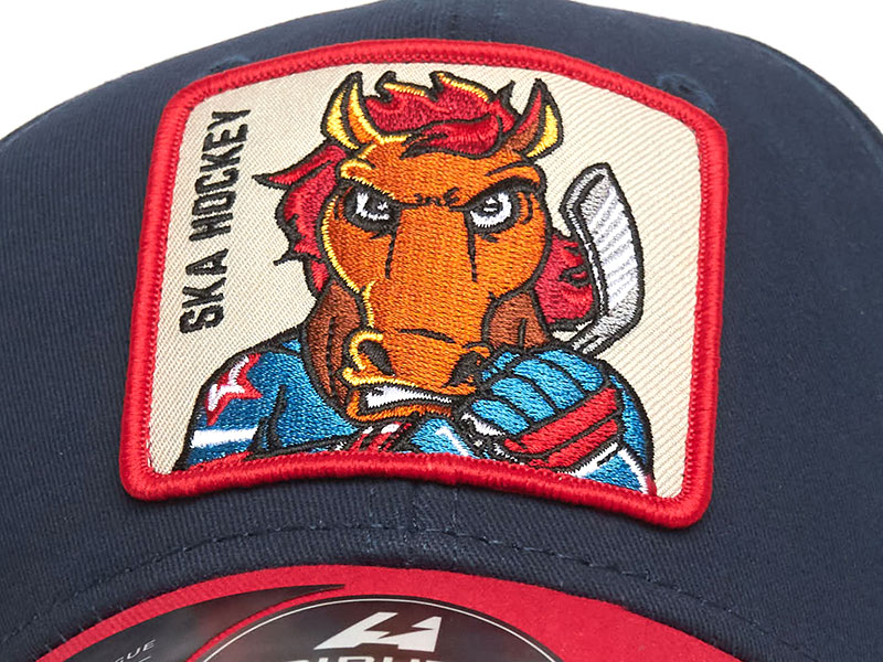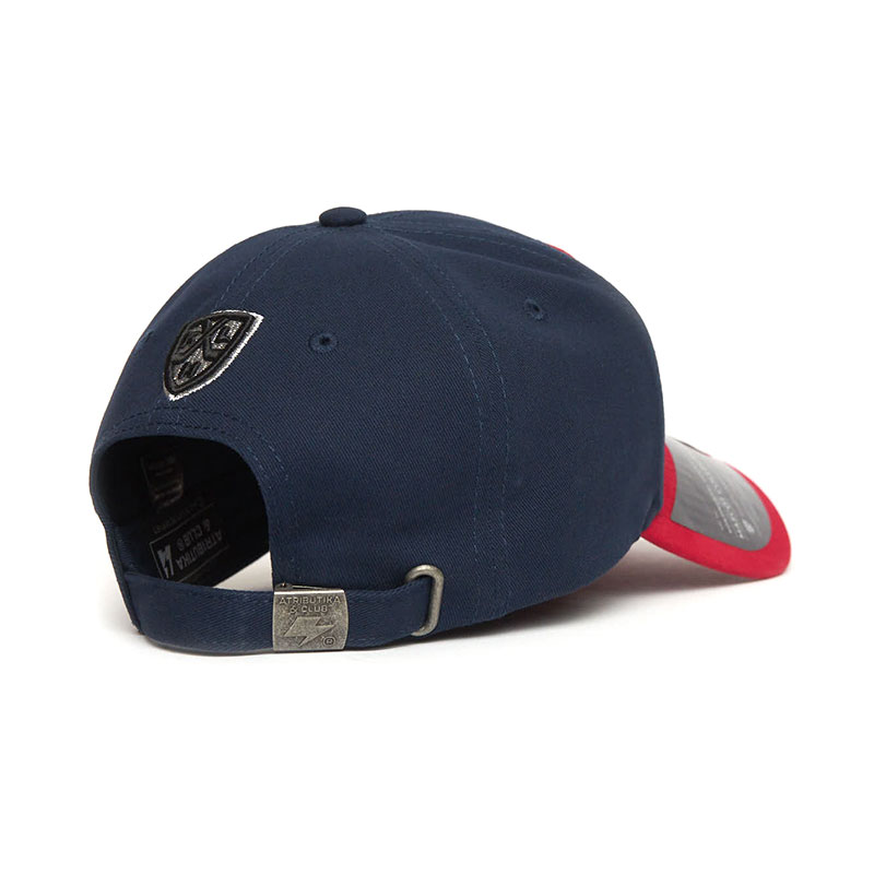 Бейсболка российского хоккейного клуба КХЛ СКА Санкт-Петербург. Материал 100% хлопок. Размер L/XL соответствует российскому размеру 55-58. Глубина бейсболки 11 см. Объёмный шеврон с 3D-вышивкой талисмана и названия клуба. Слева вышивка логотипа производителя. Сзади шеврон KHL. Свод бейсболки усилен, держит форму. Изогнутый козырёк прошит. Длина козырька 7 см. Обод бейсболки с внутренней стороны прошит влагопоглощающей лентой. Задняя застёжка регулирующая размер на передвижном металлическом фиксаторе с гравировкой логотипа производителя. Вентиляционные люверсы сверху бейсболки. Деликатная стирка. Производство Atributika & Club в КНР.