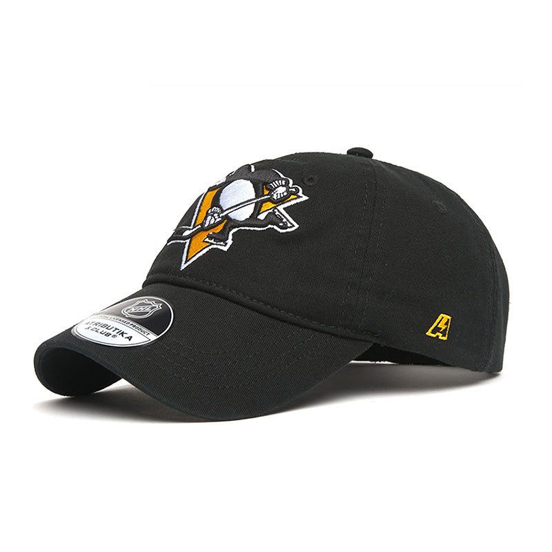 Бейсболка хоккейного клуба NHL Pittsburgh Penguins. Материал лёгкий 100% хлопок. Размер XXL, российский 59-62. Не глубокая посадка. Глубина бейсболки 11 см. Объёмная вышивка эмблемы, названия клуба и логотипа производителя. Свод бейсболки мягкий, не усилен, не держит форму. Изогнутый козырёк прошит. Длина козырька 7 см. Обод бейсболки с внутренней стороны прошит влагопоглощающей лентой. Задняя застёжка регулирующая размер на передвижном металлическом фиксаторе с гравировкой логотипа NHL. Вентиляционные люверсы сверху. Деликатная стирка. Производство Atributika & Club в КНР.