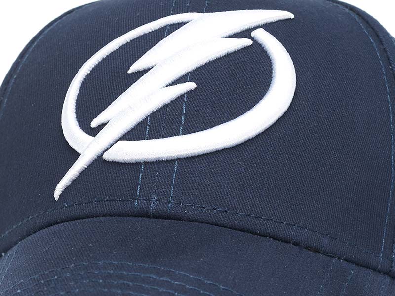Бейсболка хоккейного клуба НХЛ Тампа-Бэй Лайтнинг. Модель для подростков YOUTH. Материал 100% хлопок. Размер S/M российский 52-54. По центру вышивка эмблемы клуба, слева вышивка логотипа производителя. Сзади вышивка названия клуба. Свод бейсболки усилен. Козырек прошит. Обод бейсболки с внутренней стороны прошит влагопоглощающей лентой. Задняя застежка регулирующая размер на металлическом фиксаторе с символикой НХЛ. Вентиляционные люверсы сверху бейсболки. Машинная стирка в холодной воде. Производство Atributika & Club в КНР