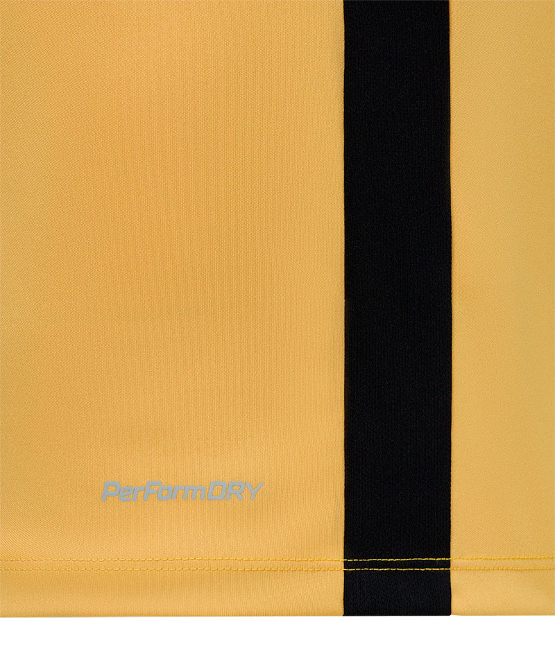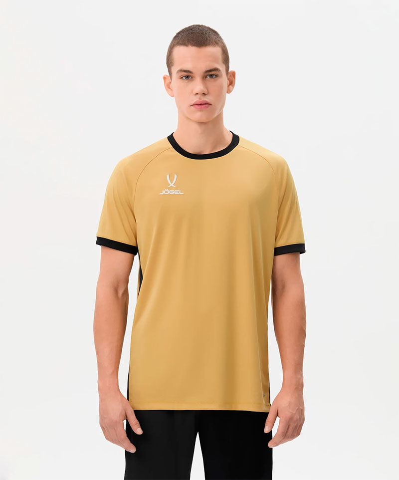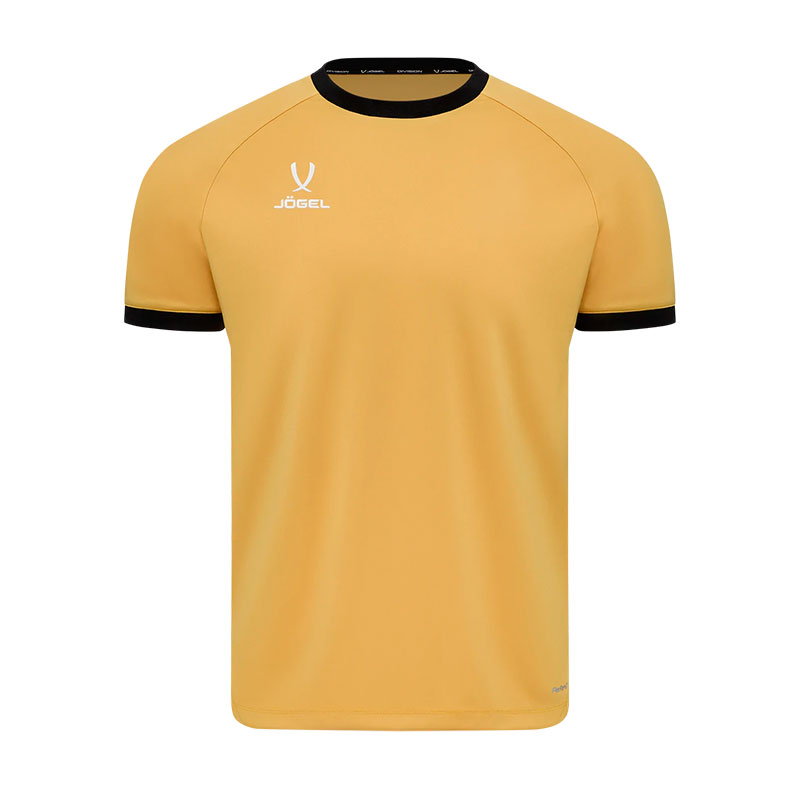 Футболка мужская для футбола или занятий спортом российского бренда JOGEL. Мягкий, гладкий, легкий и дышащий материал 100% полиэстер с применением технологии эффективного влагоотведения PerFormDRY. Материал с высокой прочностью и хорошей воздухопроницаемостью. PerFormDRY - это специальная технология обработки тканей JOGEL, которая способствует быстрому выведению влаги и помогает игроку чувствовать себя комфортно при интенсивных нагрузках. Футболка с атлетическим кроем, коротким рукавом реглан и круглым воротом. Сетчатые вставки по бокам для лучшей циркуляции воздуха. Максимальная свобода движения во время тренировок и матчей. Футболка не линяет и не выгорает на солнце, легко стирается, быстро высыхает. С правой стороны логотип бренда из специального силиконового материала по технологии 3D нанесения. Сверху на спине rubber принт. Цвет золото с черными вставками. Размерная сетка производителя в прикрепленных фотографиях. Деликатная стирка. Производство JOGEL в КНР.