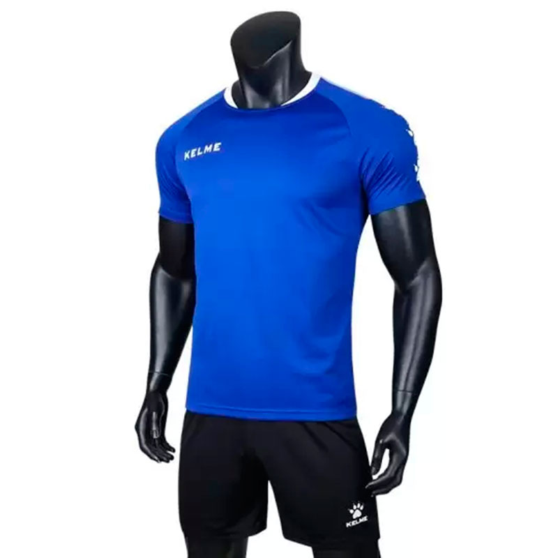 Футболка мужская для футбола или занятий спортом испанского бренда KELME. Тонкий, износостойкий и дышащий материал 100% полиэстер. Футболка с короткими рукавами реглан и полукруглым воротом. Термопринт логотипа производителя на правой груди, левом рукаве и внизу на спине. Длина футболки по спине 70 см (размер XL). Размер XL российский размер 52. Цвет королевский синий. Стирка в холодной воде. Производство KELME в КНР.