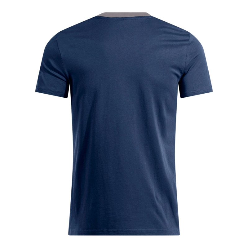 Футболка мужская испанского бренда Joma. Классическая футболка с круглым воротом и коротким рукавом темно-синего цвета. Футболка из высококачественного материала, который делает её лёгкой, дышащей, идеально подходящей для спортивного или повседневного использования. Кроме того, материал обеспечивает тепло при низких температурах. Тонкий материал средней плотности 90% хлопок, 10% вискоза. По центру объёмная 3D вышивка названия производителя. Спина без вышивок и рисунков. Размер XL российский размер 52. Длина футболки по спине 70 см (размер XL). Деликатная стирка. Производство Joma в Бангладеш.