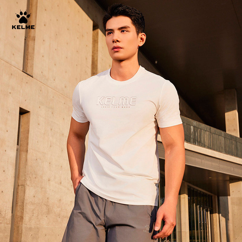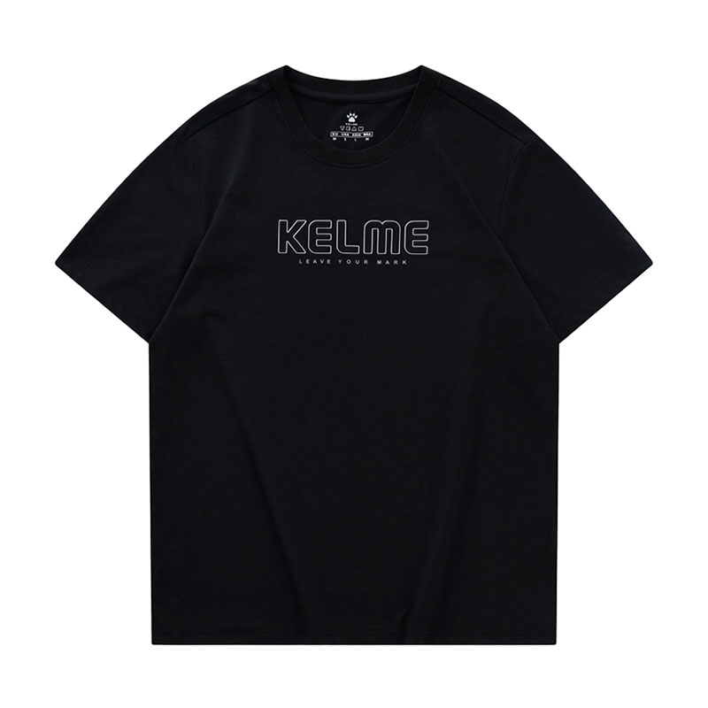 Футболка мужская испанского бренда KELME. Плотный, эластичный материал 71% хлопок, 29% полиэстер. Классическая футболка с круглым воротом и коротким рукавом черного цвета. По центру объемный полимерный логотип производителя. Спина без надписей и рисунков. Размер XL российский размер 52. Длина футболки по спине 70 см (размер XL). Деликатная стирка. Производство KELME в КНР.