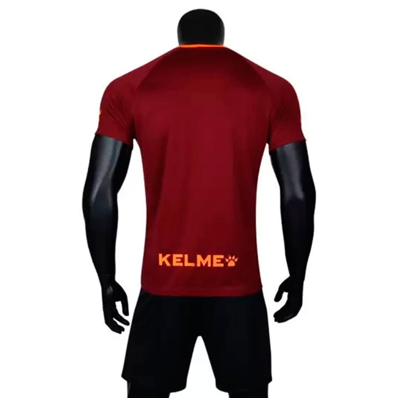 Футболка мужская для футбола или занятий спортом испанского бренда KELME. Тонкий, износостойкий и дышащий материал 100% полиэстер. Футболка с короткими рукавами реглан и полукруглым воротом. Термопринт логотипа производителя на правой груди, левом рукаве и внизу на спине. Длина футболки по спине 70 см (размер XL). Размер XL российский размер 52. Цвет красное вино. Стирка в холодной воде. Производство KELME в КНР.