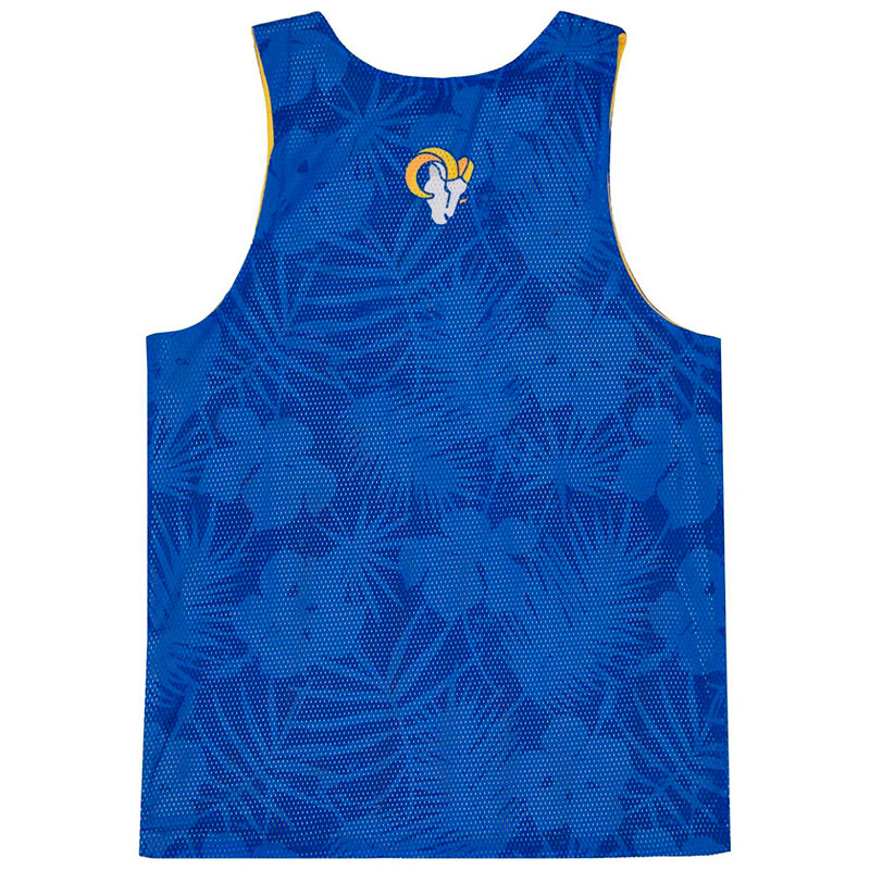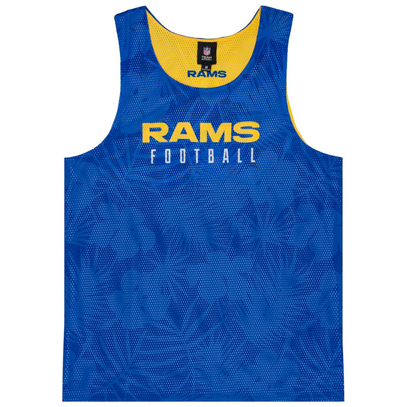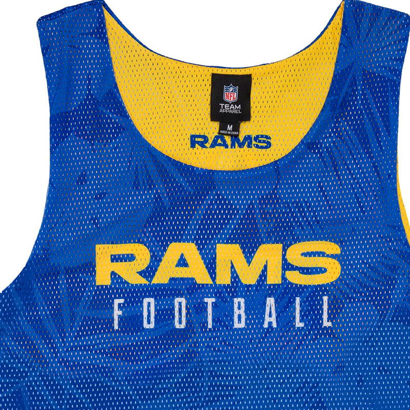 Майка мужская клуба по американскому футболу из NFL Los Angeles Rams. Майка двусторонняя без рукавов, в клубных цветах. Тонкий, дышащий, сетчатый материал средней плотности 100% полиэстер. На груди принт названия клуба. На спине эмблема клуба. Вторая сторона жёлтого цвета. Длина майки по спине 74 см. Размер 2XL российский размер 56. Деликатная стирка. Производство Forever Collectibles в КНР.