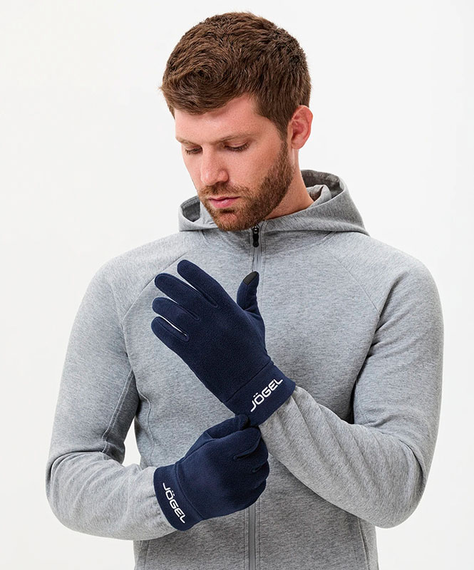 Перчатки флисовые российского бренда JOGEL. Материал теплый, мягкий эластичный флис 95% полиэстер, 5% спандекс. Специальные вставки на большом и указательном пальцах для использования сенсорных гаджетов не снимая перчаток. Вышивка логотипа производителя. Цвет темно-синий. Размер XS/S детский, размер M/L подходит подросткам, женщинам, или на среднюю мужскую руку, размер XL - мужской. Размерная сетка перчаток JOGEL в прикрепленных фотографиях. Деликатная стирка. Производство JOGEL в КНР.