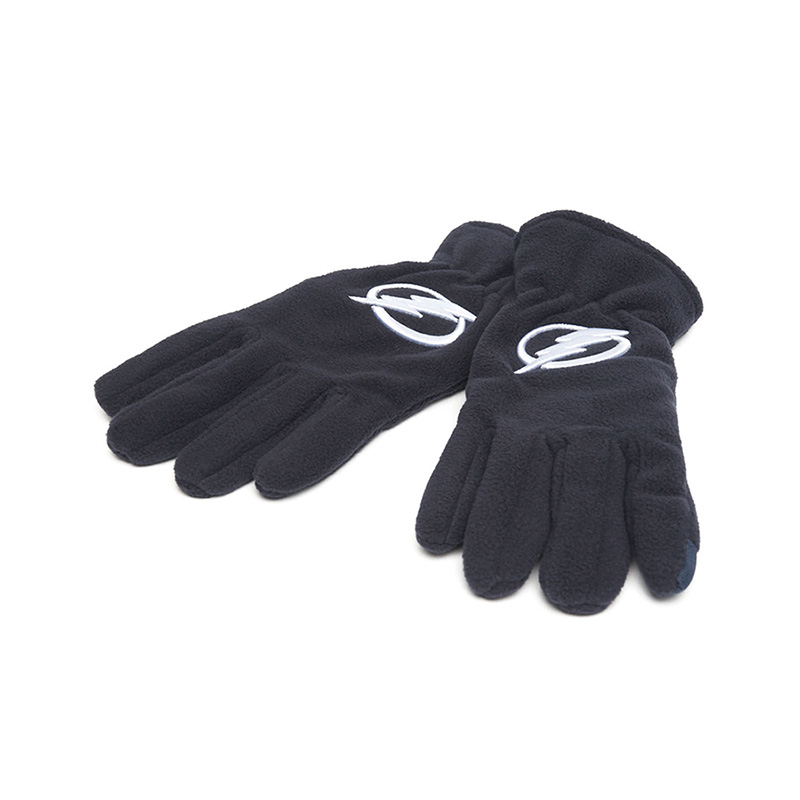 Перчатки хоккейного клуба НХЛ Tampa Bay Lightning. Материал теплый, мягкий флис 100% полиэстер. Размер подростковый-женский 7. Вышивка эмблемы клуба. Два D-образных кольца и карабин для переноски. Специальные вставки на двух пальцах для использования сенсорных гаджетов не снимая перчаток. Машинная стирка в холодной воде. Производство Atributika & Club в КНР.