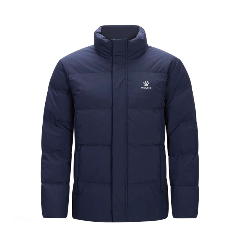 Пуховик мужской испанского бренда KELME. Плотный, приятный на ощупь стеганный материал 100% полиэстер. Подкладка 100% полиэстер. Утеплитель 80% утиный пух, 20% перо. Теплый воротник стойка. Застежка на молнии и ветрозащитной планке на липучках. Два наружных прорезных кармана с теплой подкладкой застегиваются на молнии. Внутренний открытый карман с левой стороны. Слева принт логотипа производителя серого цвета. Низ пуховика с внутренней стороны на широкой эластичной резинке для предотвращения задувания. В рукавах потайные манжеты на резинке от задувания. Длина пуховика по спине 76 см (размер XL). Размер XL российский размер 52. Ручная стирка. Производство KELME в КНР.