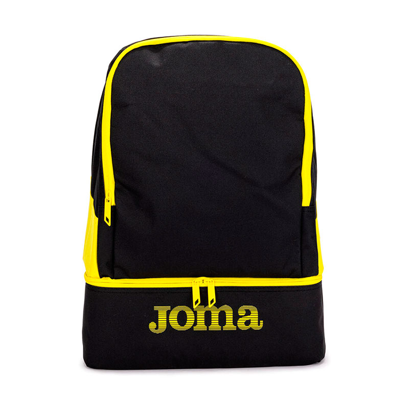 Рюкзак спортивный с отсеком для обуви испанского бренда Joma. Прочный материал 100% полиэстер. Материал гарантирует надежность и долговечность даже при интенсивном использовании. Материал устойчив не только к механическим повреждениям, но и к неблагоприятным погодным условиям, таким как дождь или снег. Цвет черный с желтым. Две регулируемые плечевые лямки с вентиляцией и ручка для переноски. Благодаря регулируемой длине лямок рюкзак идеально сидит по фигуре независимо от роста или комплекции пользователя. Регулировка позволяет равномерно распределить вес содержимого рюкзака. Застежка рюкзака на молнии с двумя бегунками для быстрого доступа к содержимому. Главное отделение объемом 26,5 литра с кармашком на молнии для документов. Наружный карман на молнии с внутренним сетчатым карманом на молнии. Нижний отсек для обуви на молнии. Сетчатая спинка для хорошей вентиляции. Нанесение логотипа производителя трафаретной печатью. Размер рюкзака 46 х 32 х 20 см. Объем Производство Joma в КНР.