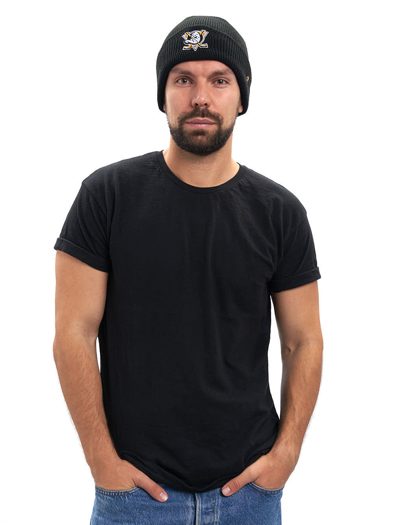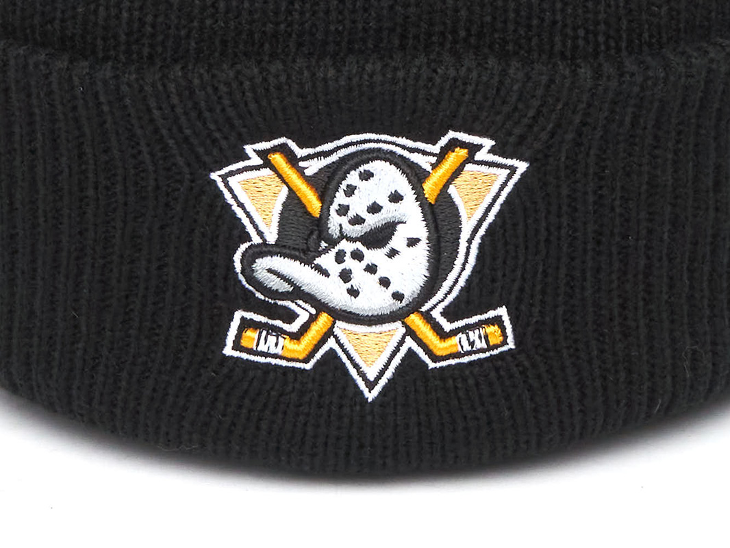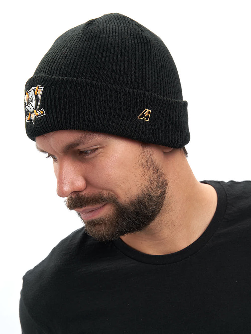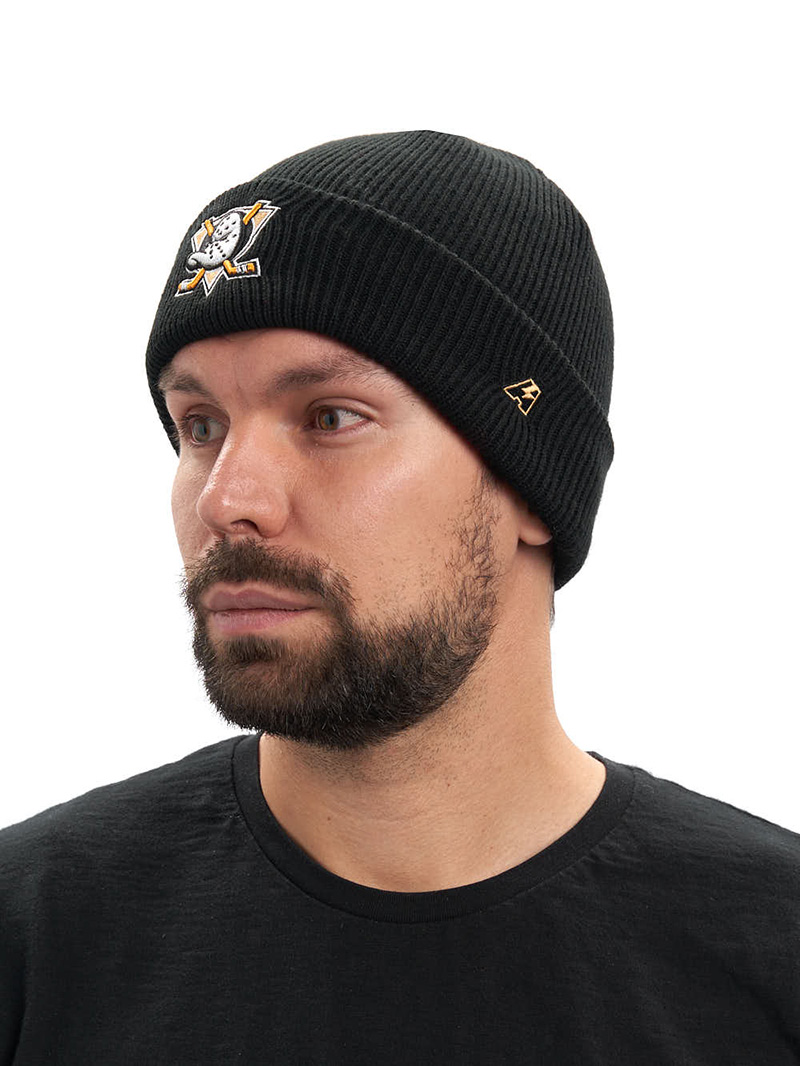Шапка с отворотом хоккейного клуба NHL Anaheim Ducks. Материал акрил 100%. Размер L/XL, российский 55-58. По центру шапки вышивка эмблемы клуба, слева вышивка логотипа производителя. Ручная стирка. Производство Atributika & Club в КНР.