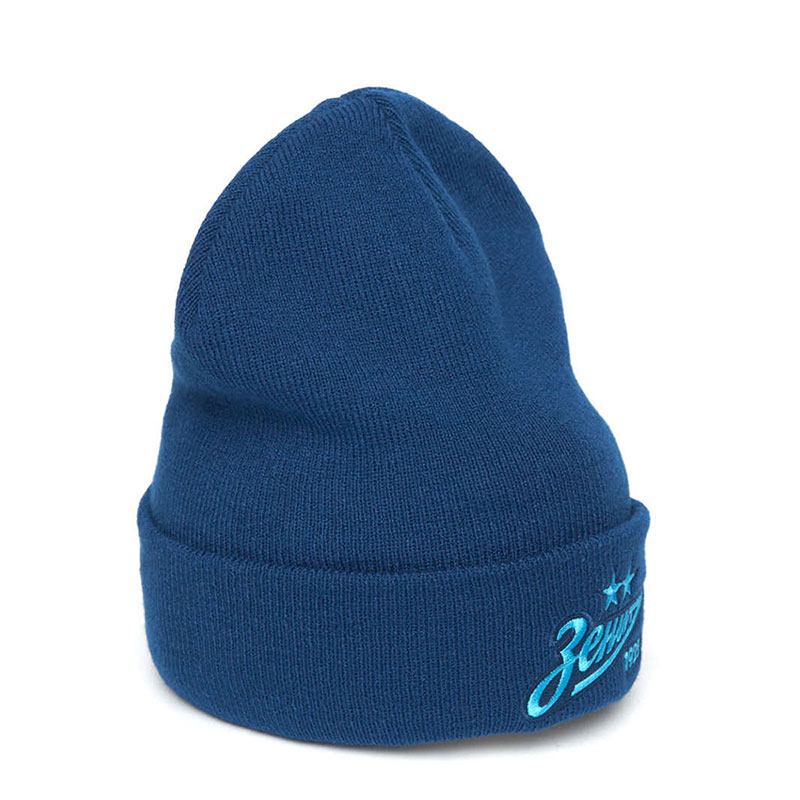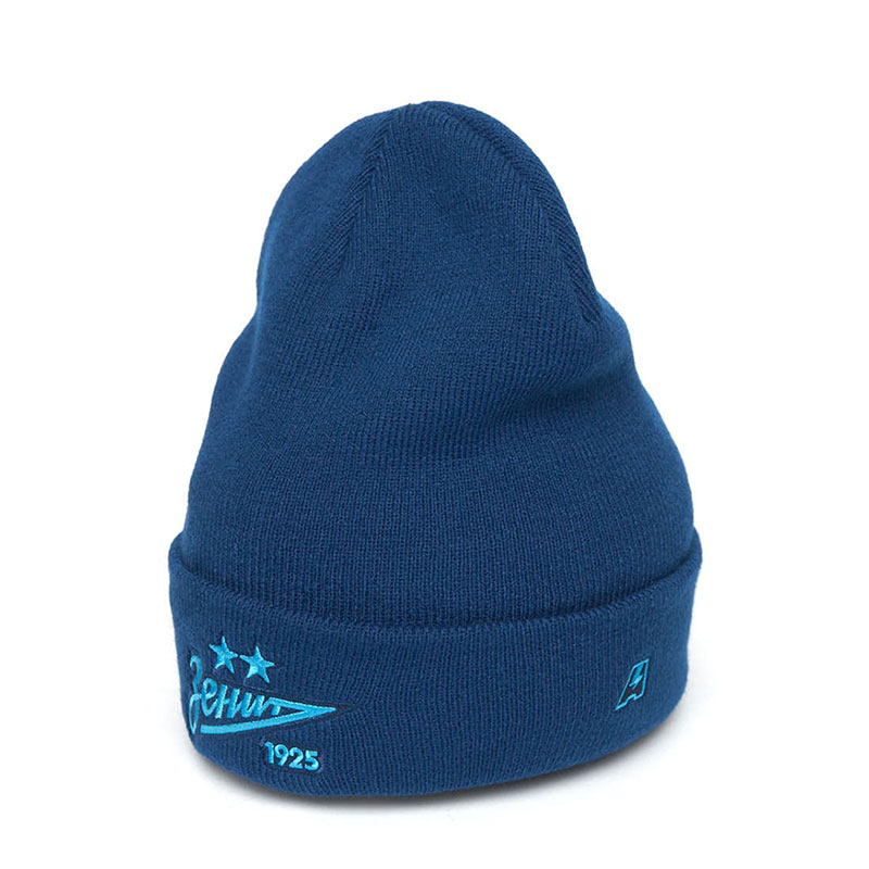 Шапка с отворотом профессионального футбольного клуба РПЛ Зенит Санкт-Петербург. Материал 100% акрил. Размер L/XL, российский 55-60. По центру шапки вышивка эмблемы клуба, слева вышивка логотипа производителя. Машинная стирка в холодной воде. Производство Atributika & Club в КНР.