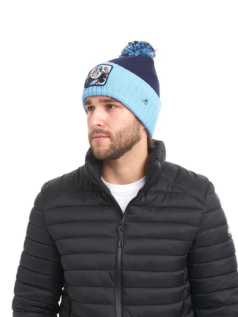 Шапка с помпоном и отворотом хоккейного клуба КХЛ Сибирь Новосибирск. Материал 100% акрил. Размер L/XL на российский 55-60. Вышивка талисмана клуба, шеврона КХЛ и логотипа производителя. Деликатная стирка. Производство Atributika & Club в КНР.