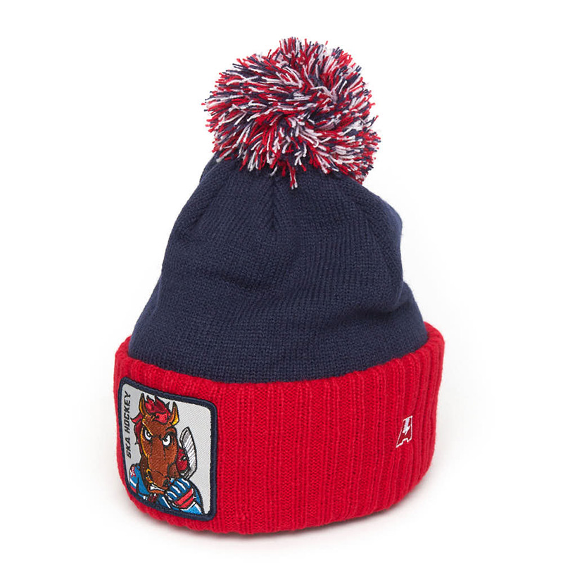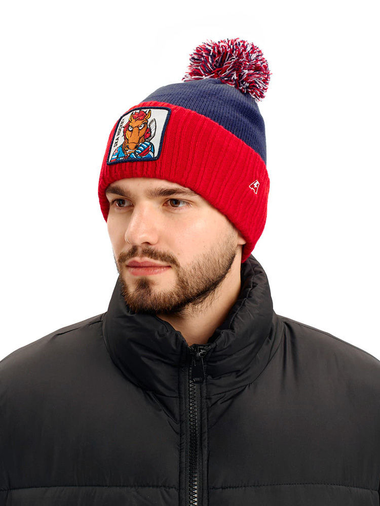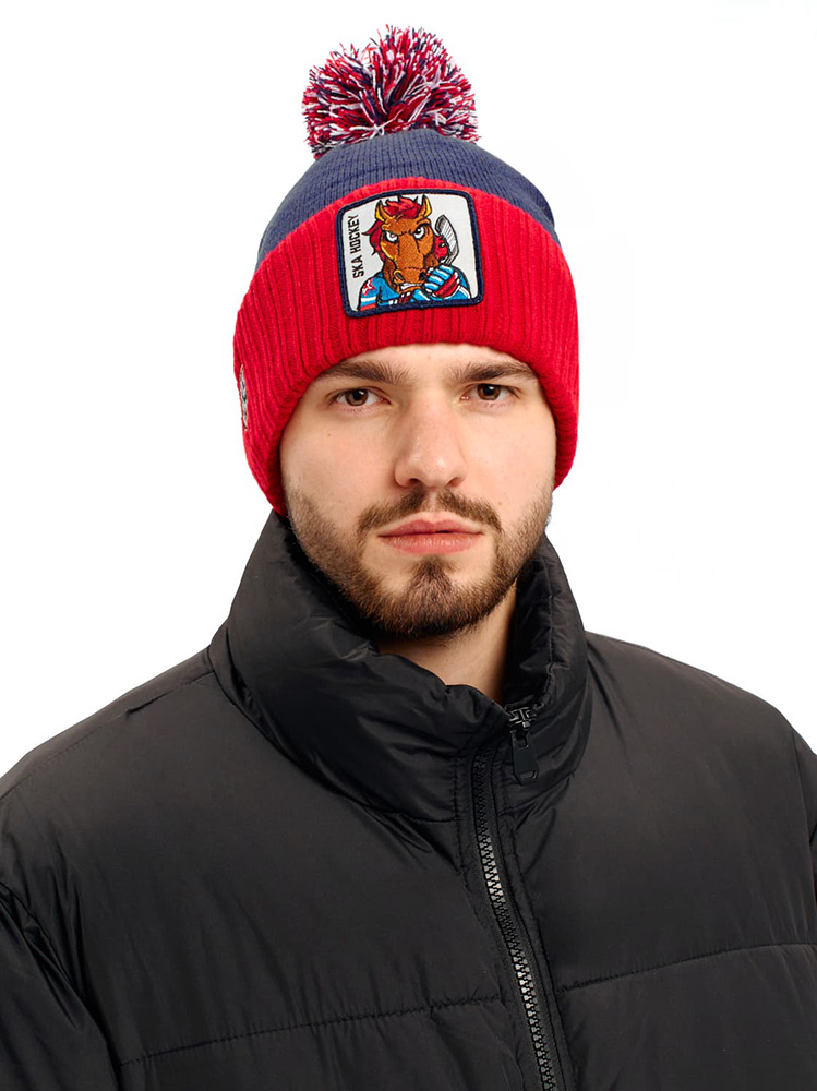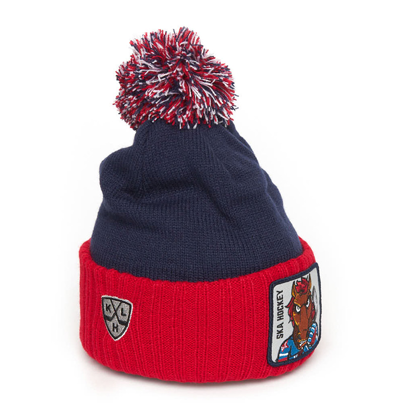 Шапка с помпоном и отворотом хоккейного клуба KHL СКА Санкт-Петербург. Материал 100% акрил. Размер L/XL на российский 55-60. Вышивка талисмана клуба, шеврона КХЛ и логотипа производителя. Деликатная стирка. Производство Atributika & Club в КНР.