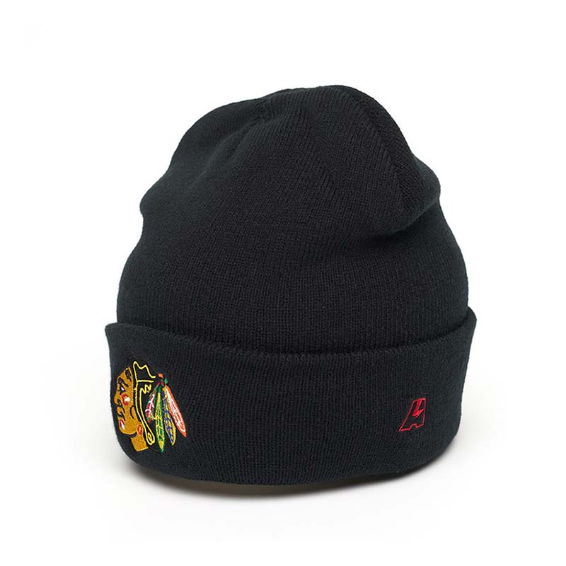 Шапка хоккейного клуба НХЛ Чикаго Блэкхокс. Материал акрил 100%. Размер L/XL, российский 55-60. По центру шапки вышивка эмблемы клуба, слева вышивка логотипа производителя. Машинная стирка в холодной воде. Производство Atributika & Club в КНР.