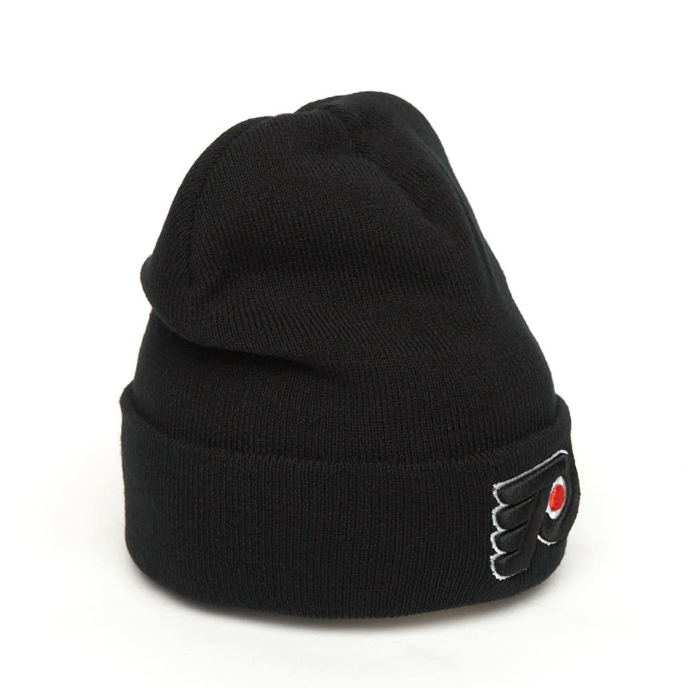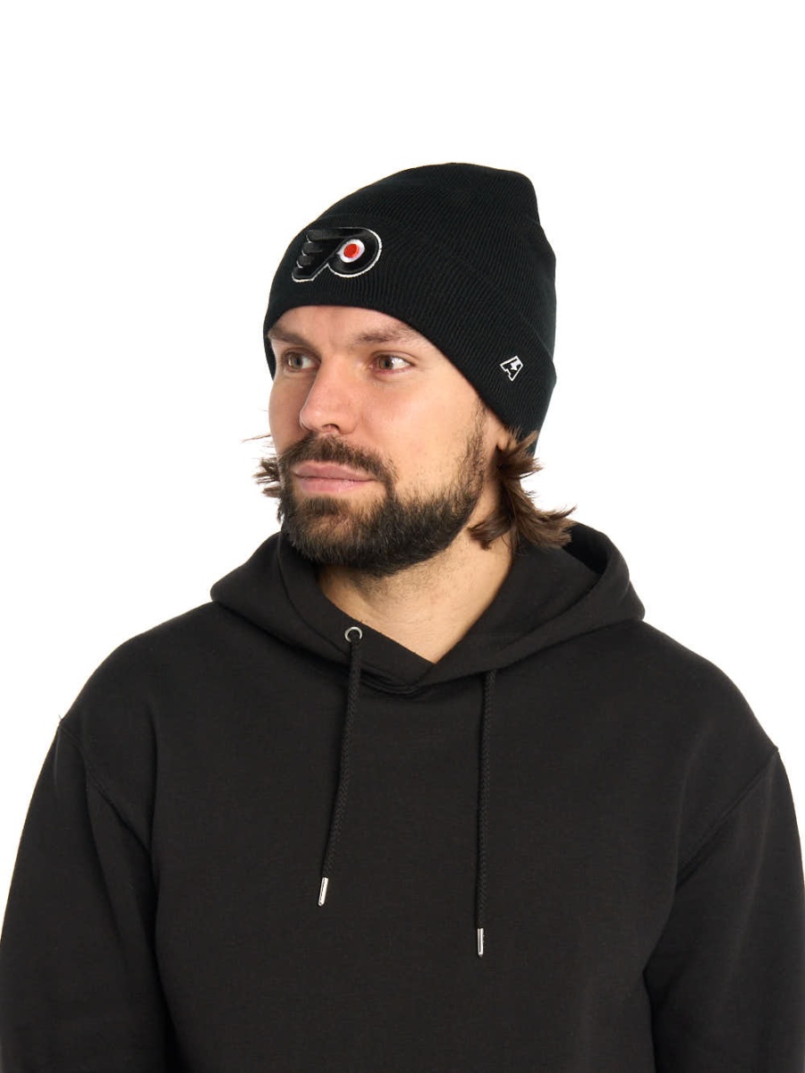 Шапка с отворотом хоккейного клуба НХЛ Филадельфия Флайерз. Материал акрил 100%. Размер L/XL, российский 55-60. По центру шапки вышивка эмблемы клуба, слева вышивка логотипа производителя. Ручная стирка. Производство Atributika & Club в КНР.