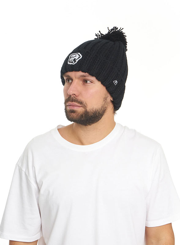 Шапка с помпоном и отворотом российского клуба КХЛ ХК Трактор Челябинск. Фактурный материал крупной вязки акрил 100%. Размер 55-58. По центру вышивка эмблемы клуба, слева вышивка логотипа производителя. Ручная стирка. Производство ПФК Atributika & Club в КНР.