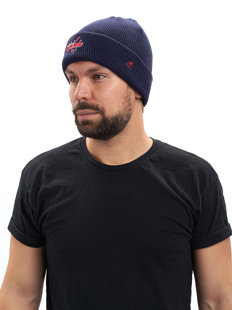 Шапка с отворотом хоккейного клуба НХЛ Вашингтон Кэпиталз. Материал акрил 100%. Размер L/XL, российский 55-58. По центру шапки вышивка эмблемы клуба, слева вышивка логотипа производителя. Ручная стирка. Производство Atributika & Club в КНР.