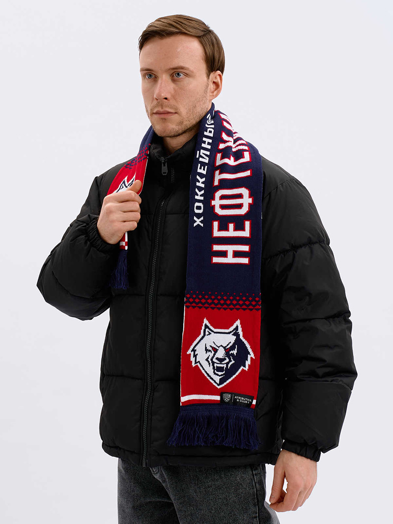 Шарф хоккейного клуба КХЛ Нефтехимик Нижнекамск. Классический двусторонний шарф в клубных цветах с бахромой. Материал 85% акрил, 15% полиэстер. Эмблема, талисман и название клуба. Ручная стирка. Длина шарфа 120 см. Ширина 16,5 см. Производство Atributika & Club в КНР.
