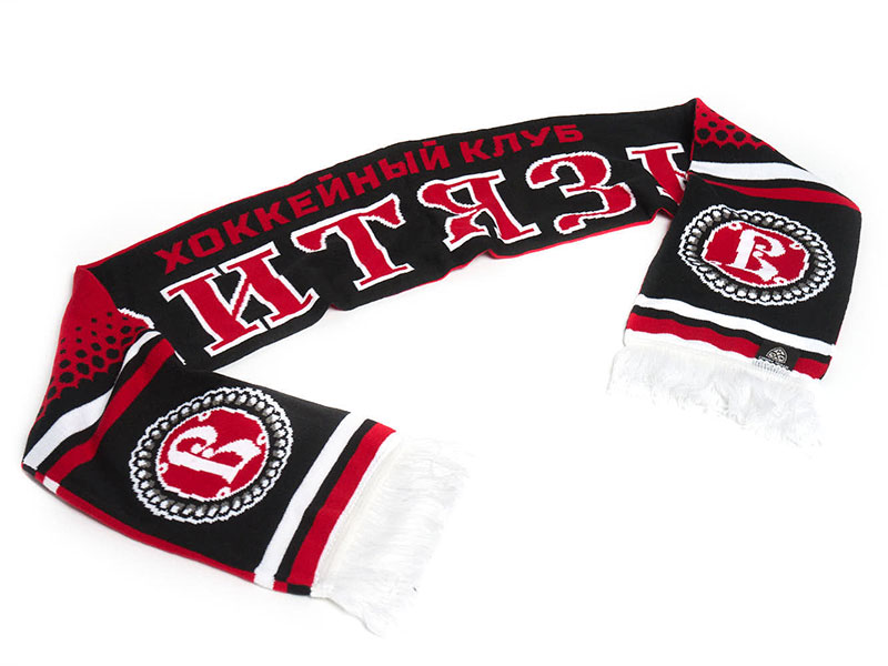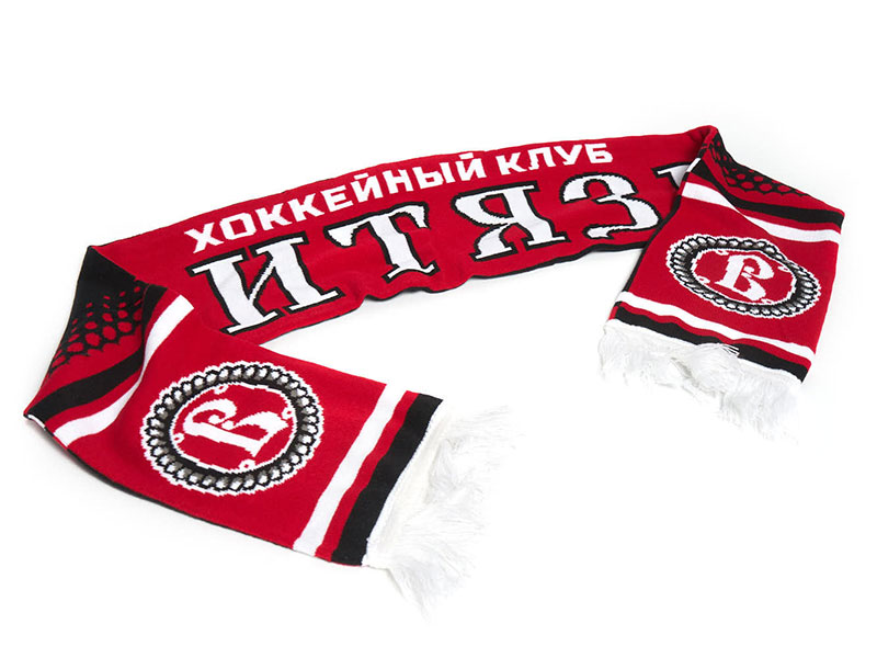 Шарф хоккейного клуба КХЛ Витязь Подольск. Классический двусторонний шарф в клубных цветах с бахромой. Материал 85% акрил, 15% полиэстер. Вышивка эмблемы и названия клуба. Ручная стирка. Длина шарфа 150 см. Ширина 18 см. Производство Atributika & Club в КНР.