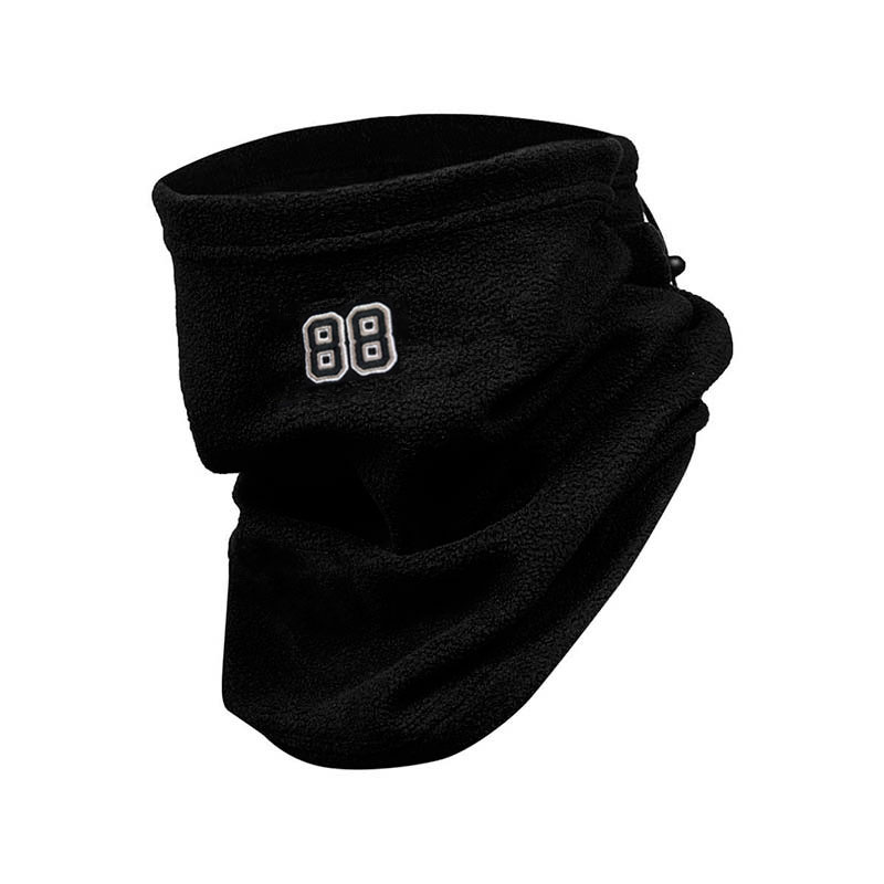 Шарф-снуд с вышивкой номер 88. Мягкий и теплый флисовый материал 100% полиэстер. Шарф одевается через голову, защищая шею во время занятий спортом в холодную погоду. Размер универсальный 54-60. Объем регулируется шнурком с кулиской фиксатором. Снуд можно использовать как маску, шарф, шапку или капюшон. Длина 28 см, ширина 25 см. Вышивка 88 с левой стороны. Ручная стирка. Производство Selfie Work Россия.