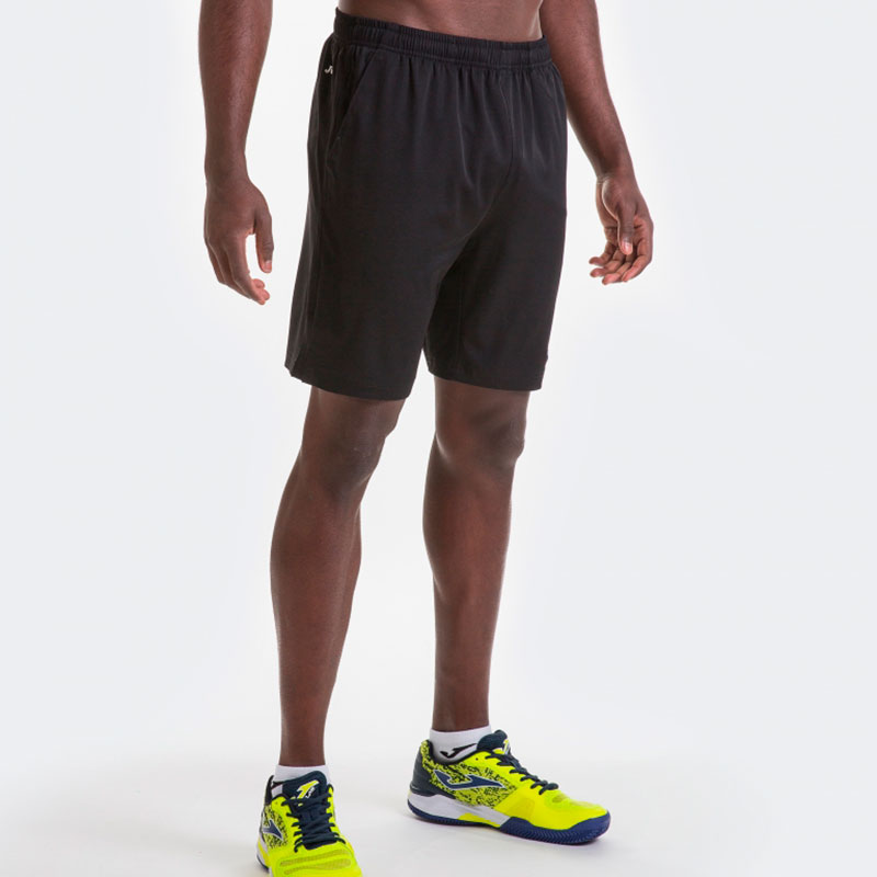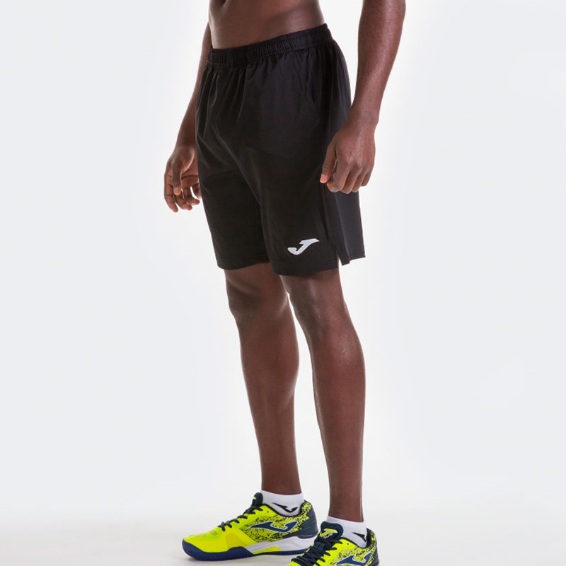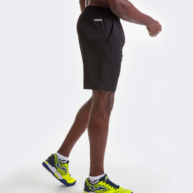 Шорты теннисные мужские испанского бренда Joma. Комфортные спортивные шорты для большого тенниса и падела. Легкий, гладкий, эластичный материал 95% полиэстер, 5% эластан. Без подкладки. Пояс на эластичной резинке с шнурком фиксатором для регулировки объема. Два наружных кармана. Без внутренних карманов. Слева вышивка логотипа производителя, справа сзади термопринт названия. Разрезы по бокам обеспечивают максимальную свободу движений. Размер XL российский размер 52. Деликатная стирка. Производство Joma в КНР.