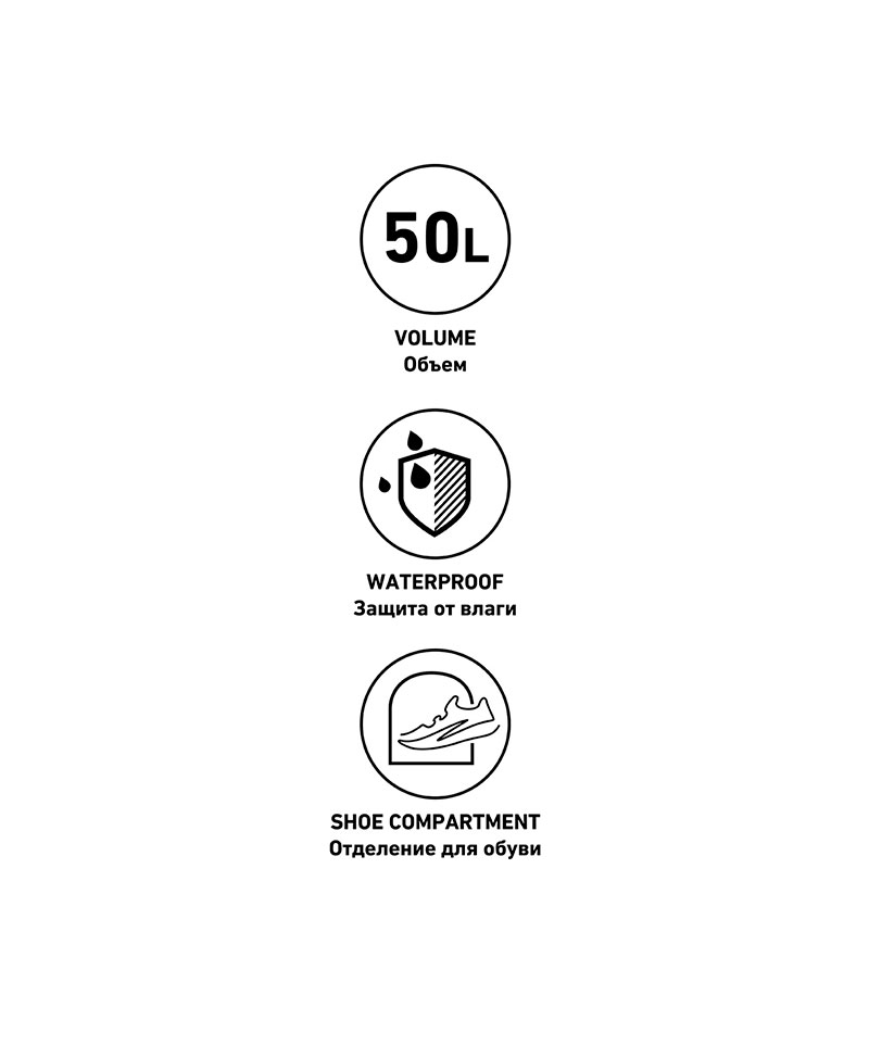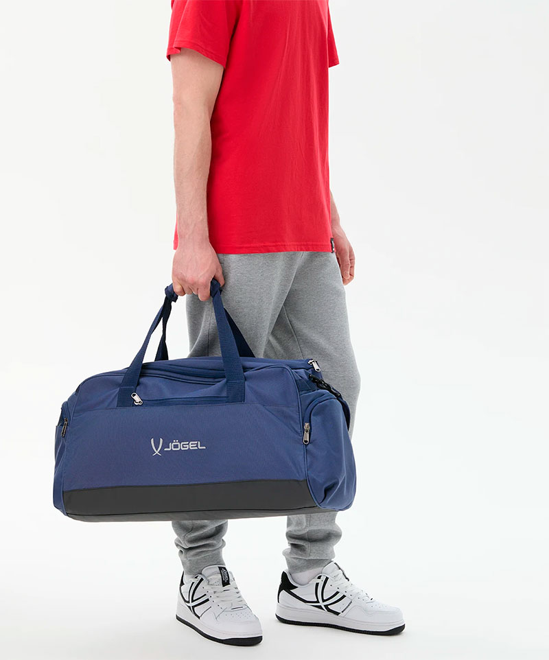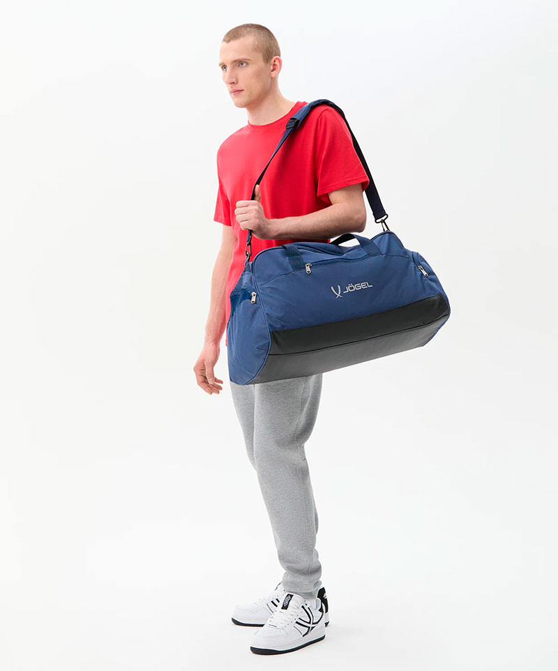 Сумка спортивная российского бренда JOGEL. Большая спортивная сумка вместит все нужные вещи для тренировок или в путешествиях. Прочный, износостойкий материал 100% полиэстер с влагоотталкивающей и грязеотталкивающей пропиткой. Подкладка 100% полиэстер 210D PU. Съемный, регулируемый ремень с подплечником для переноски. Прочная двойная ручка. Просторное основное отделение застегивается на молнию с двумя бегунками для быстрого доступа к содержимому. Внутренний кармашек на молнии для документов. Четыре внешних кармана, один из которых предназначен для хранения обуви. Карман для обуви имеет вставку из сетчатого материала для лучшей вентиляции. Дно сумки дополнительно защищено поливинилом. Логотип производителя со светоотражающим элементом для безопасного передвижения в тёмное время суток. Размер сумки 57 х 19 х 32 см. Вес 1,025 кг. Объём 50 литров. Производство JOGEL в КНР.