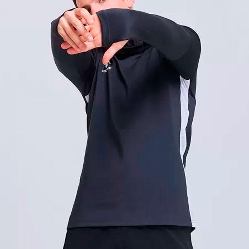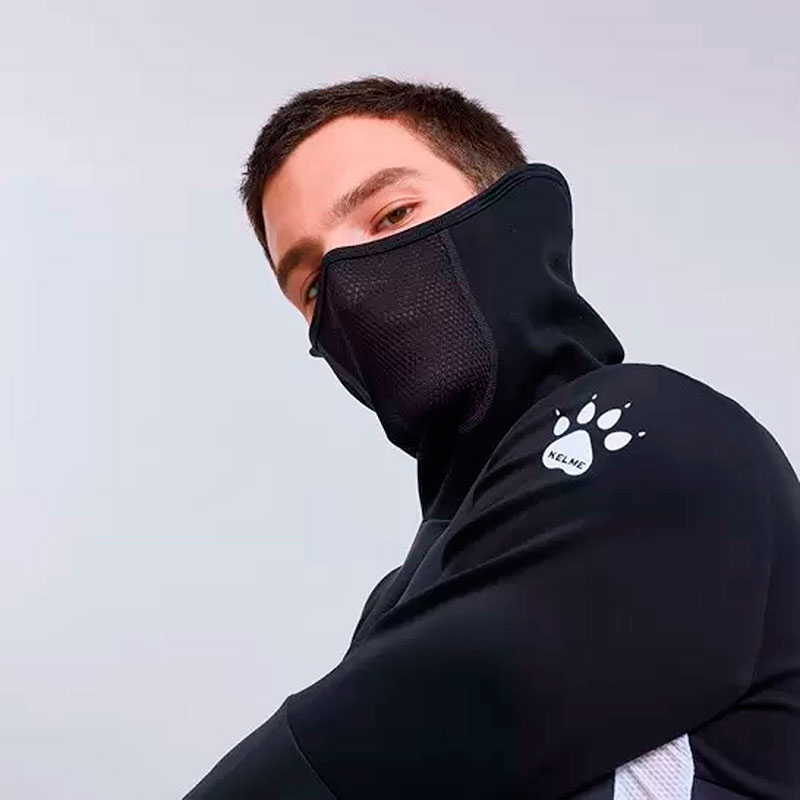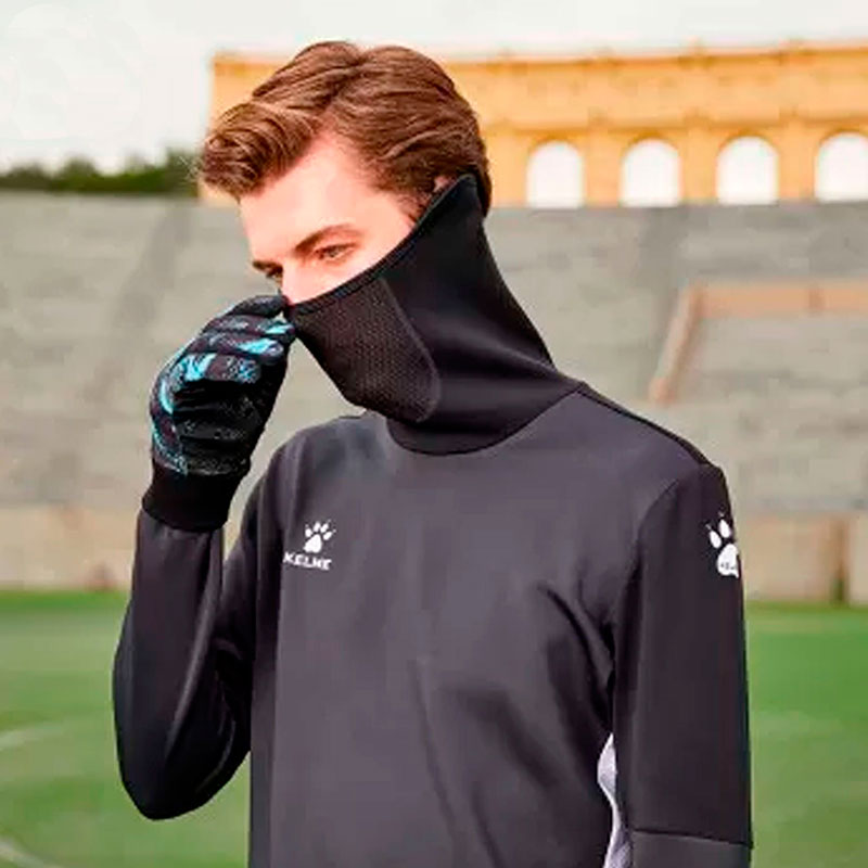 Толстовка тренировочная мужская испанского бренда KELME. Высококачественная и функциональная толстовка, которая обеспечивает свободу движения во время тренировок спортсменов любого уровня. Спортивная толстовка без застежки и без карманов. Плотный, гладкий, эластичный материал 87% полиэстер, 13% спандекс. Без подкладки и утеплителя. Технологичная ткань обеспечивает быстрое отведение влаги и поддерживает ощущение сухости во время тренировки. Без застежки и без карманов. Плотное прилегание к телу и вставки белого цвета из сетки по бокам, отводят излишки тепла и влаги, и сохраняют комфорт. Высокий воротник в виде шарфа-снуда защищает шею, лицо и уши от холода. Вшитая маска из сетки для комфортного дыхания, а внутренние фиксаторы по бокам для закрепления воротника на ушах. Внизу на рукавах прорези для сохранения тепла и защиты рук в прохладную погоду. На правой груди, плечах и спине логотип производителя. Цвет темно-серый с черными и белыми вставками. Размер XL российский размер 52. Длина по спине 76 см (размер XL). Стирка в холодной воде. Производство KELME в КНР.